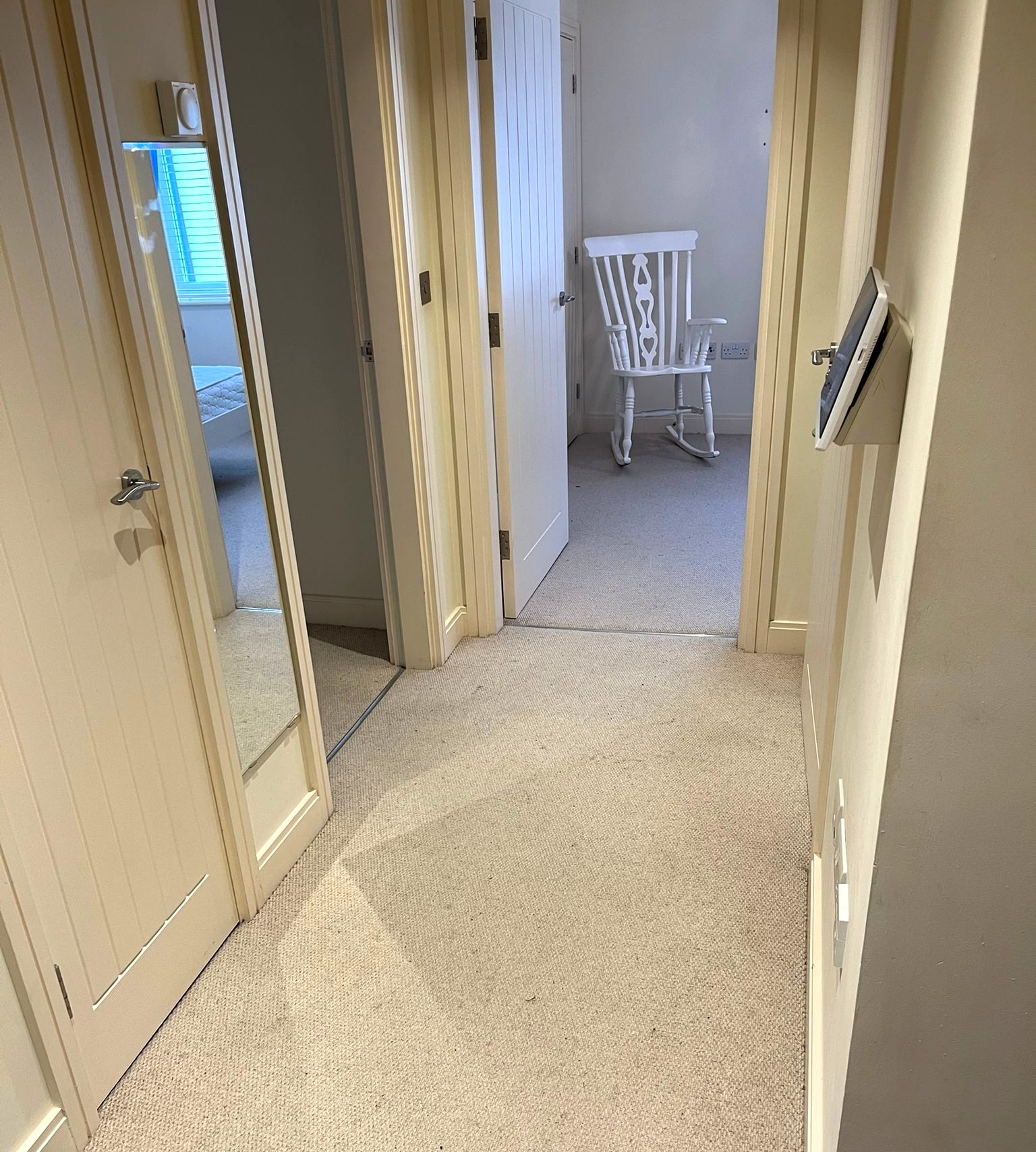 - Smooth ceilings and walls throughout, finished in emulsion paint - White linen