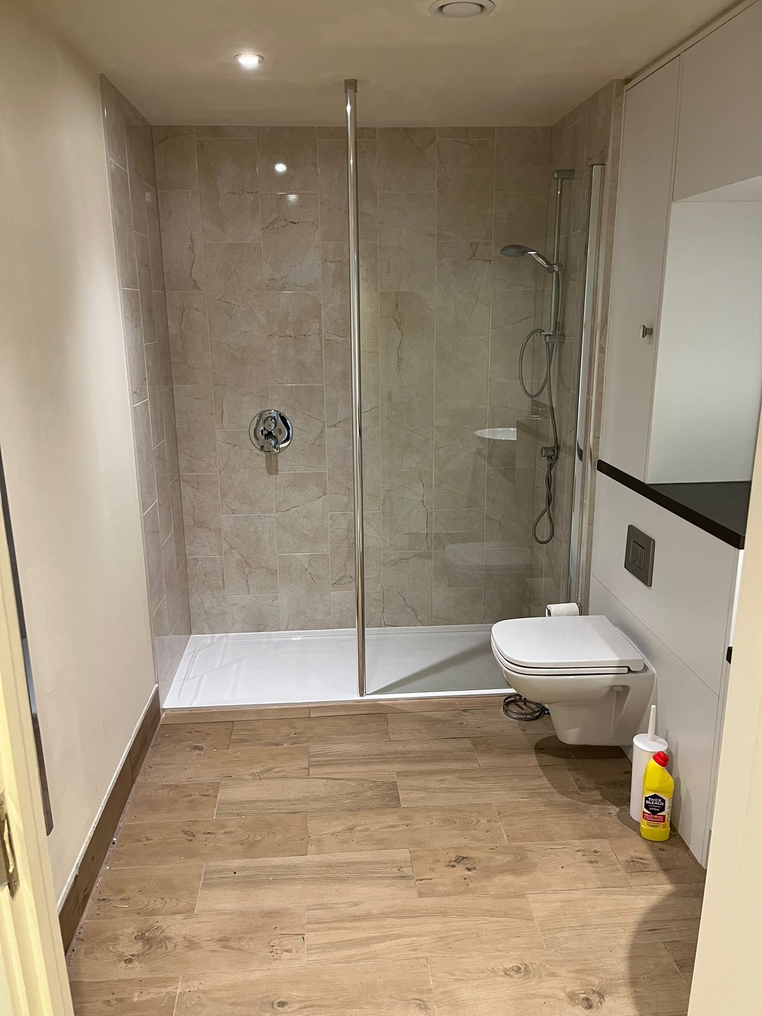 - Glass screens to shower with chrome shower controls