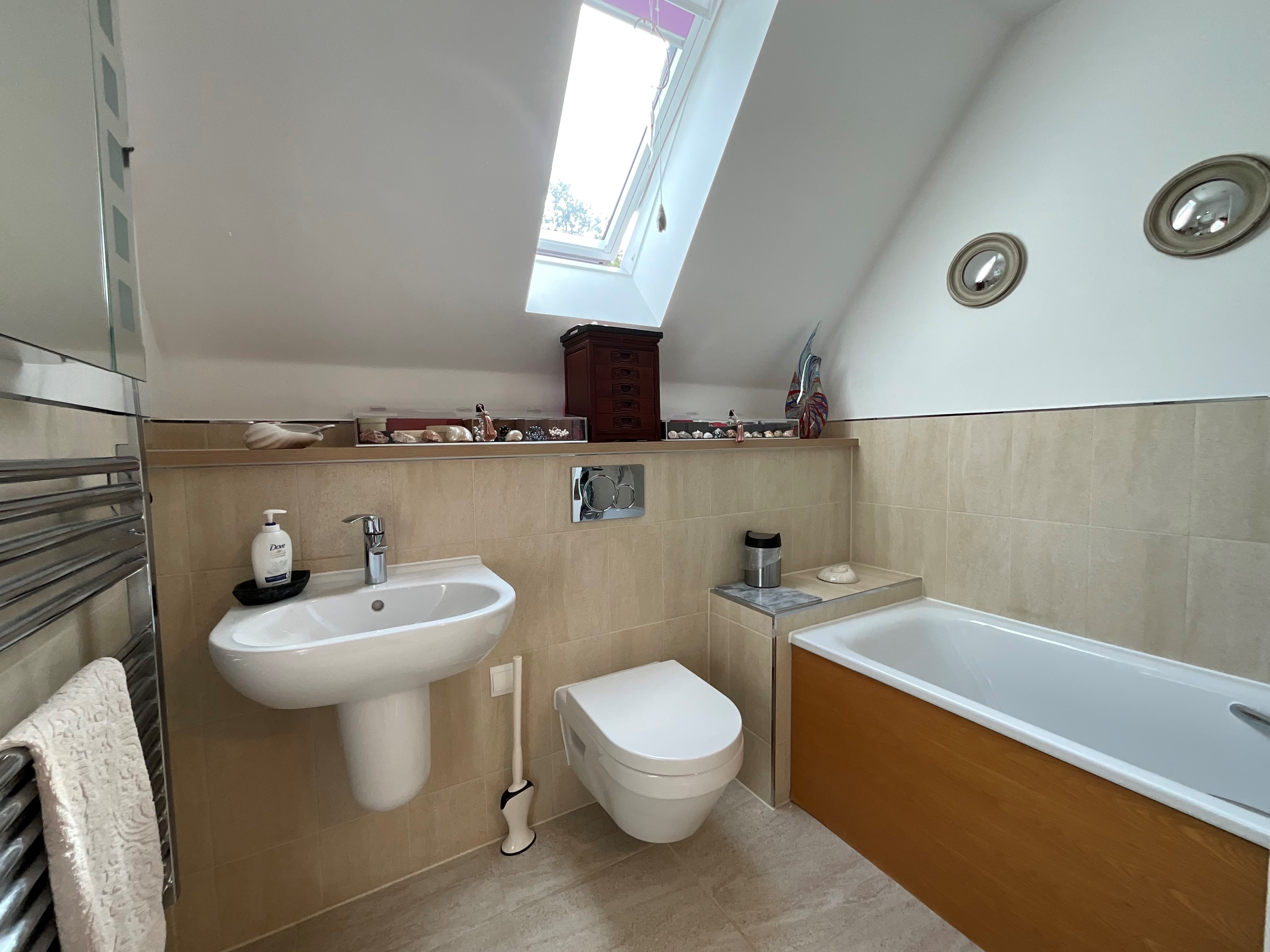 - Ceramic tiles to full height in bath and shower areas
