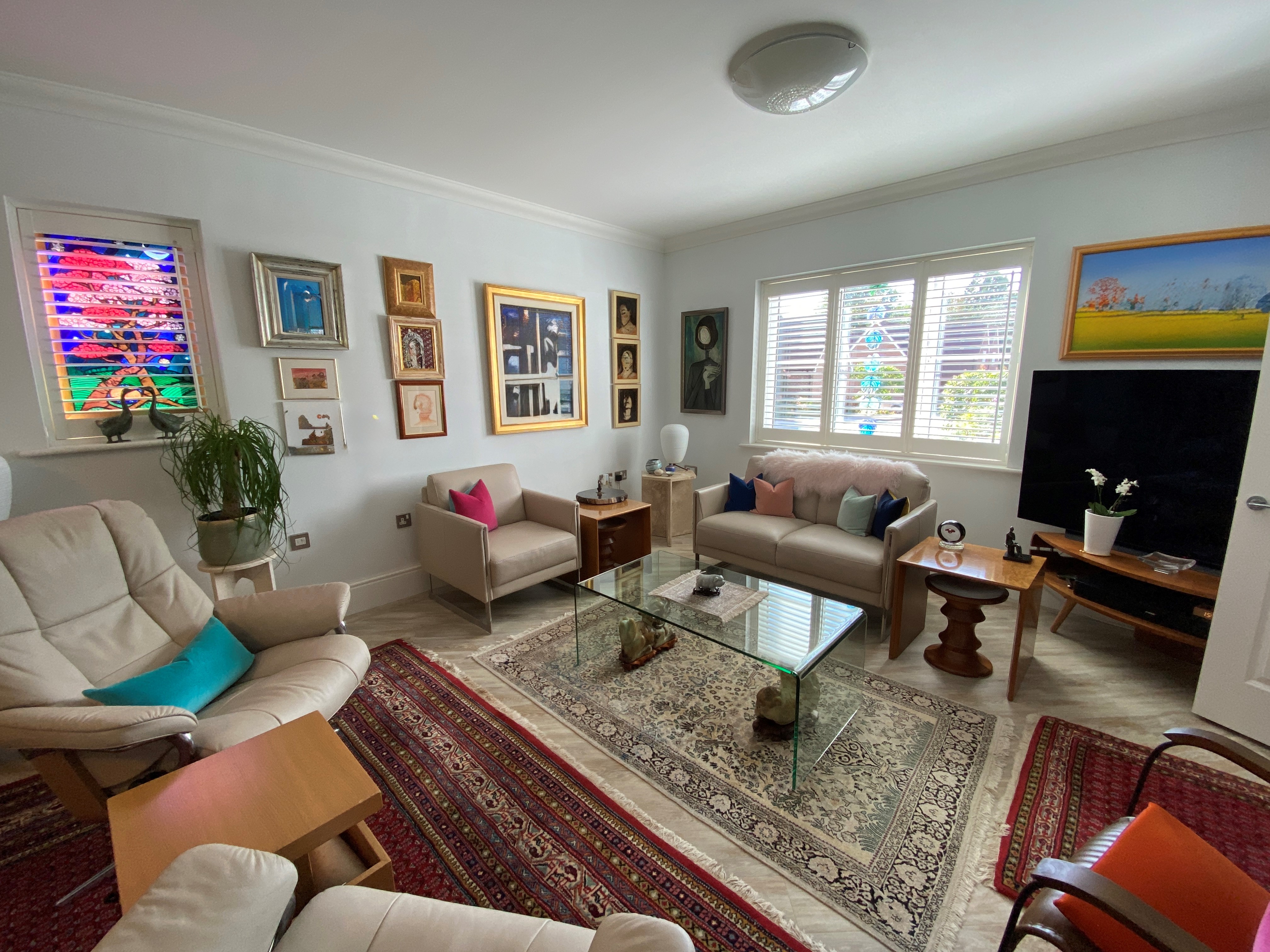 - Smooth ceilings and walls throughout, finished in emulsion paint - calico
