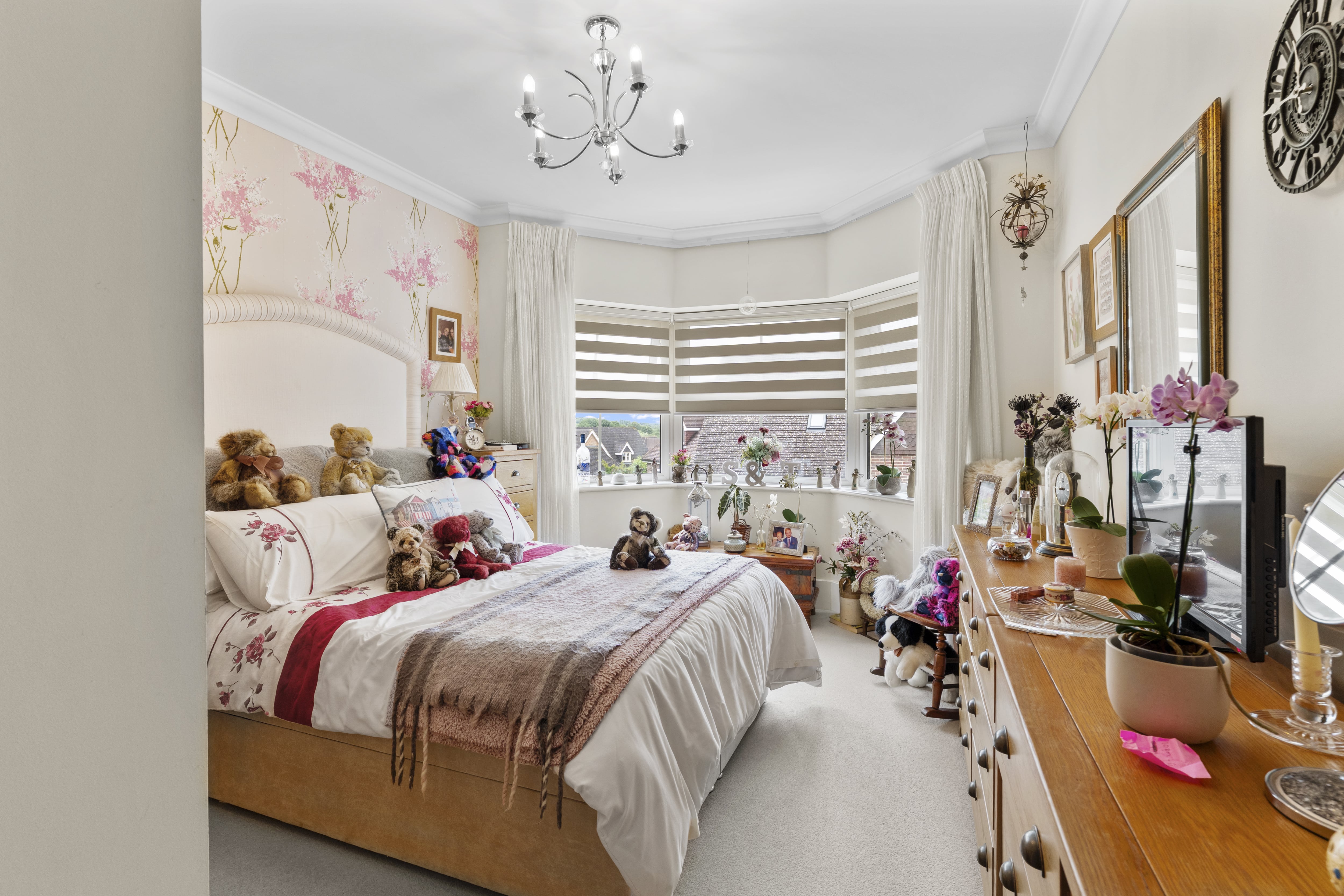 The separate kitchen-diner offers ample space for everyday meals, while the lounge benefits from a bay window and access to a private balcony. The master bedroom also features a charming bay window, enhancing the sense of space and natural light throughout.