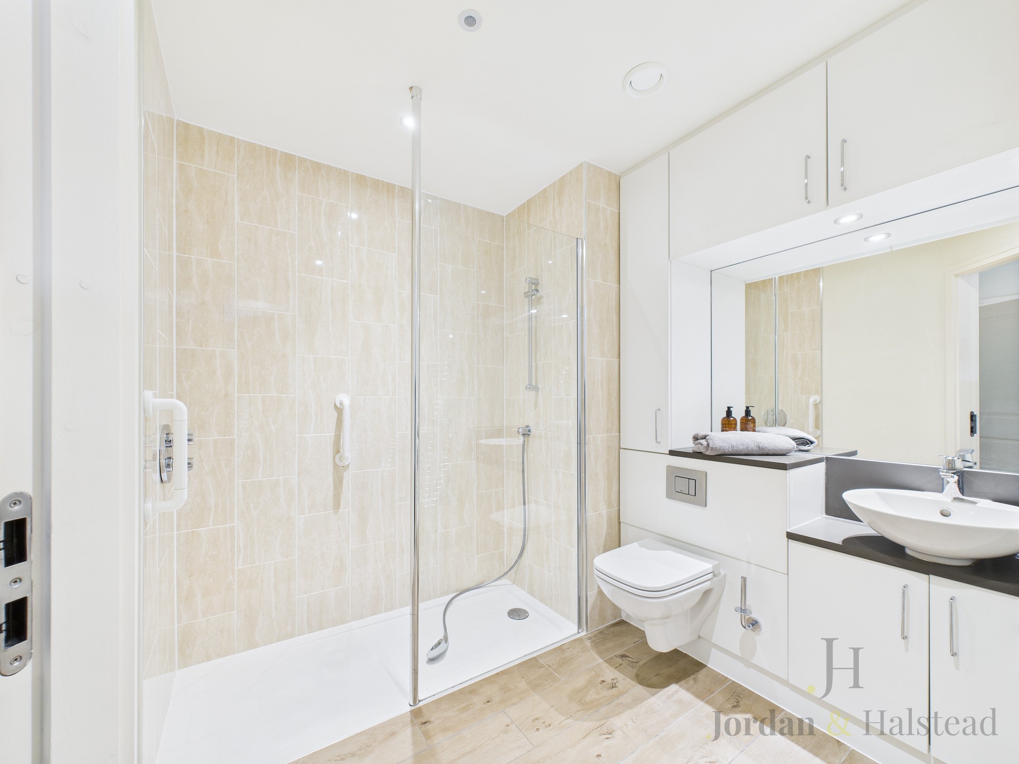 The bedroom is of exceptional size and includes an en-suite bathroom, providing comfort and convenience in a well-designed space.