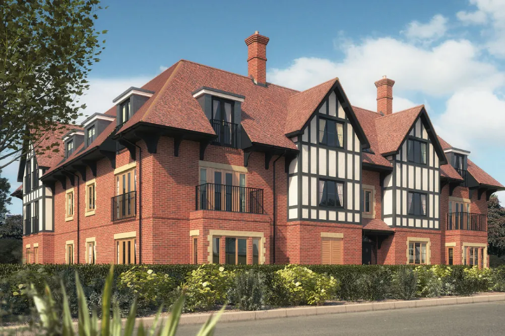 Boasting impressive views over the feature garden and landscaped grounds, Austin House occupies a prominent position – hard to miss as you enter the village. The building’s architecture is inspired by that of the local area and offers a variety of spacious two bedroom apartments complete with ensuites to the master bedrooms.