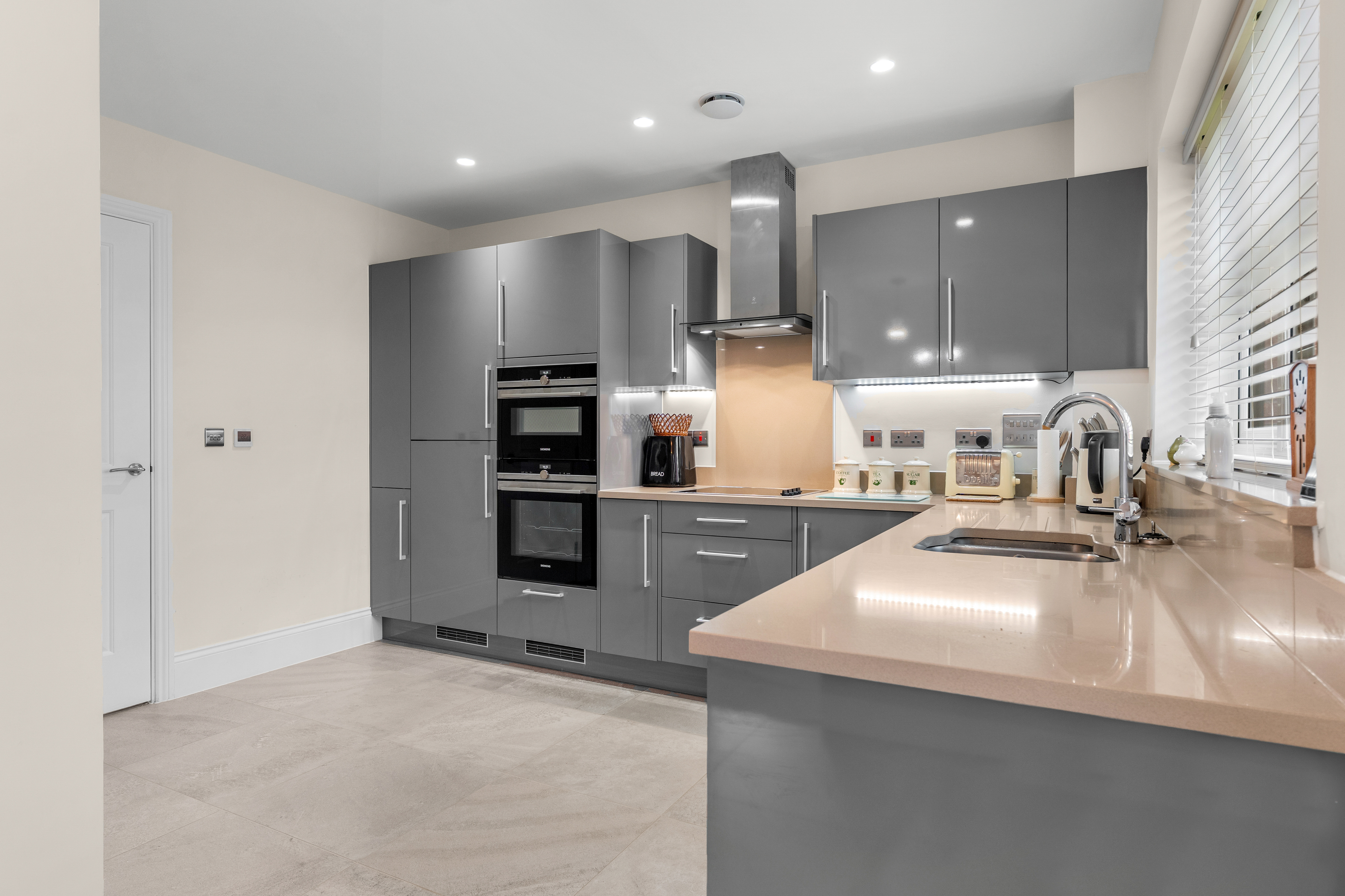 - Composite stone worktops with upstand (excepting utility rooms)