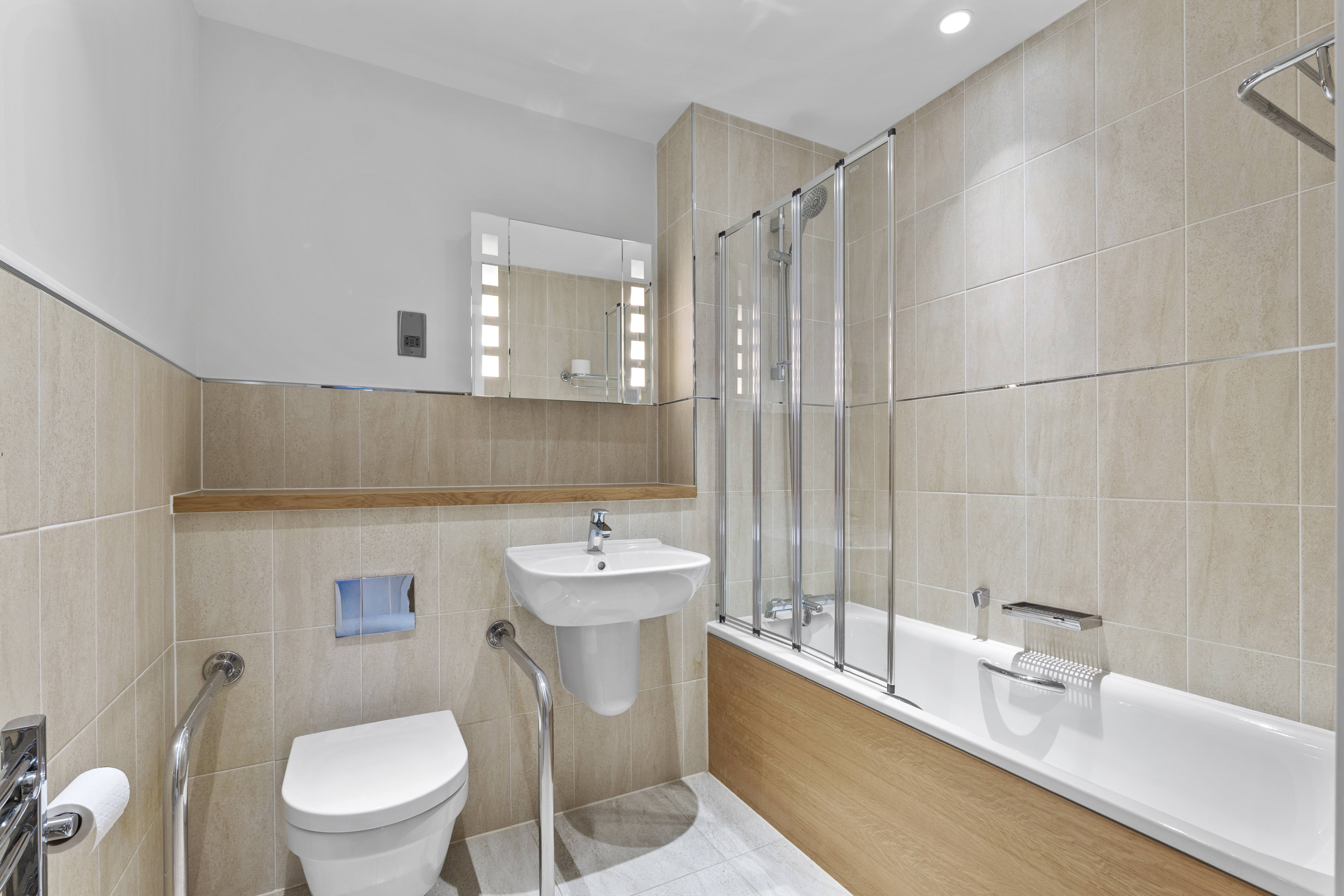 - Ceramic wall tiling; full-height to shower rooms and half-height to bathrooms