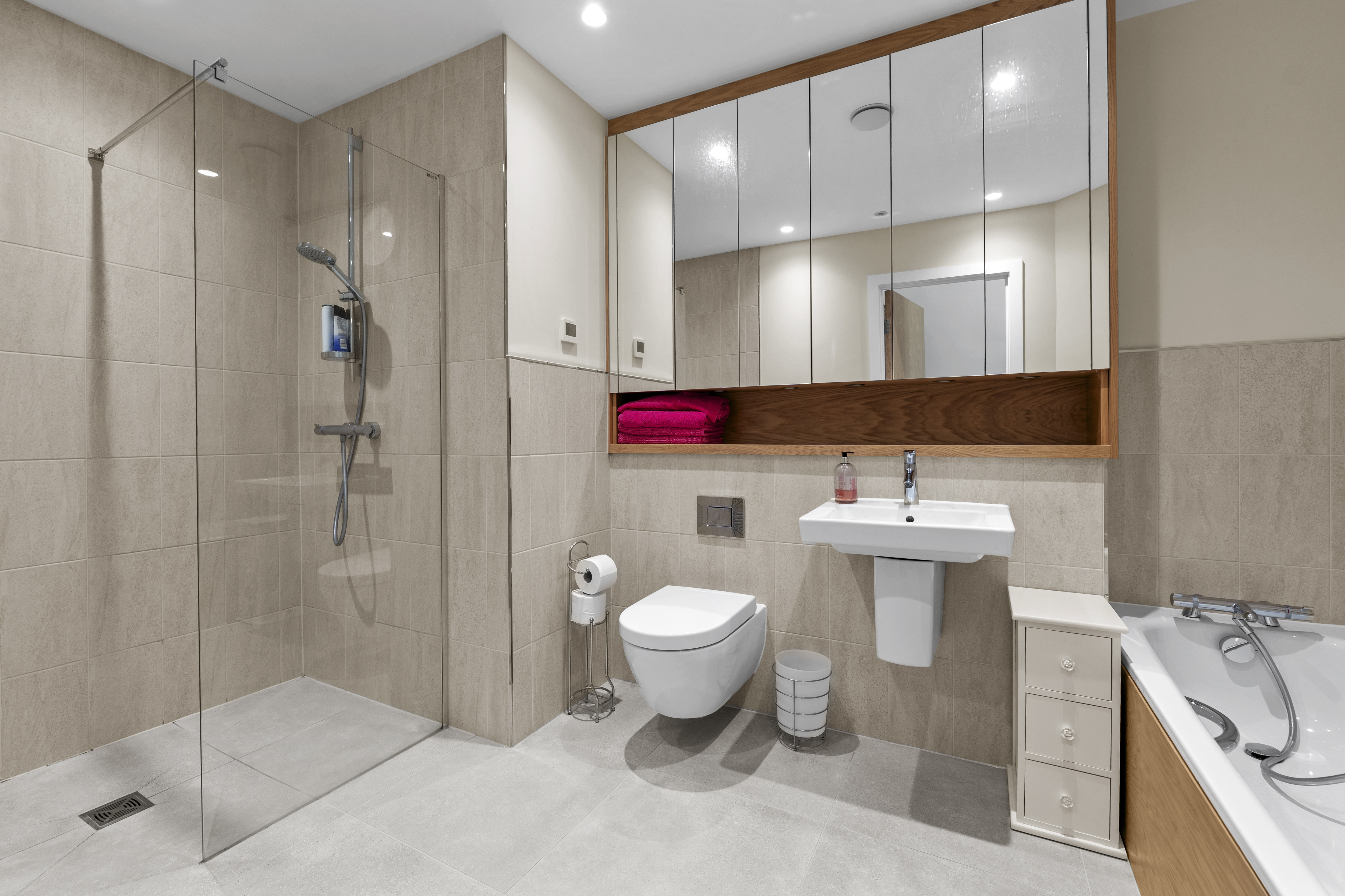 - Ceramic wall tiling; full-height to shower rooms and half-height to bathrooms