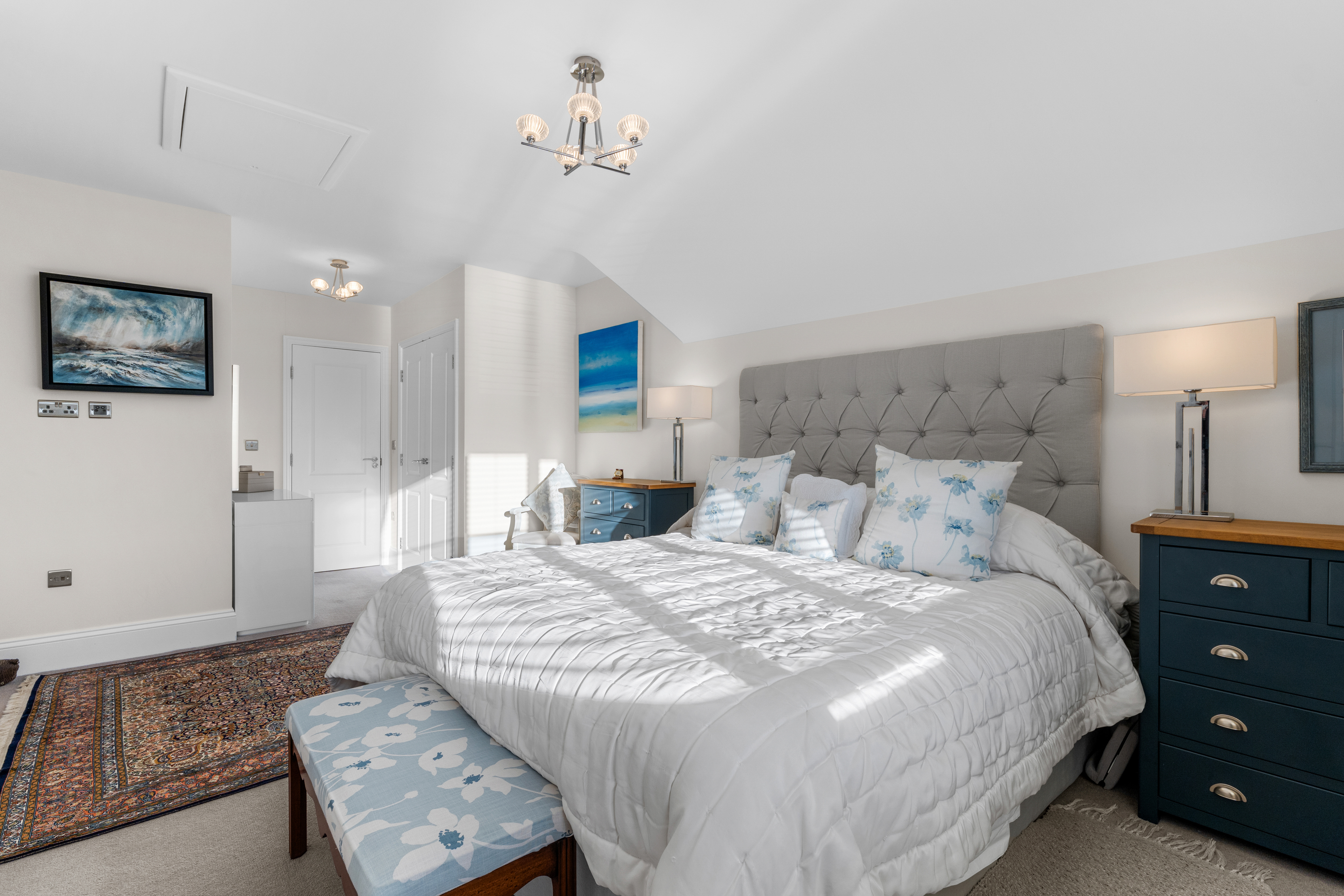 - Painted panelled doors (cottages) or oak veneered flush doors (apartments) with elegant brushed metal door furniture