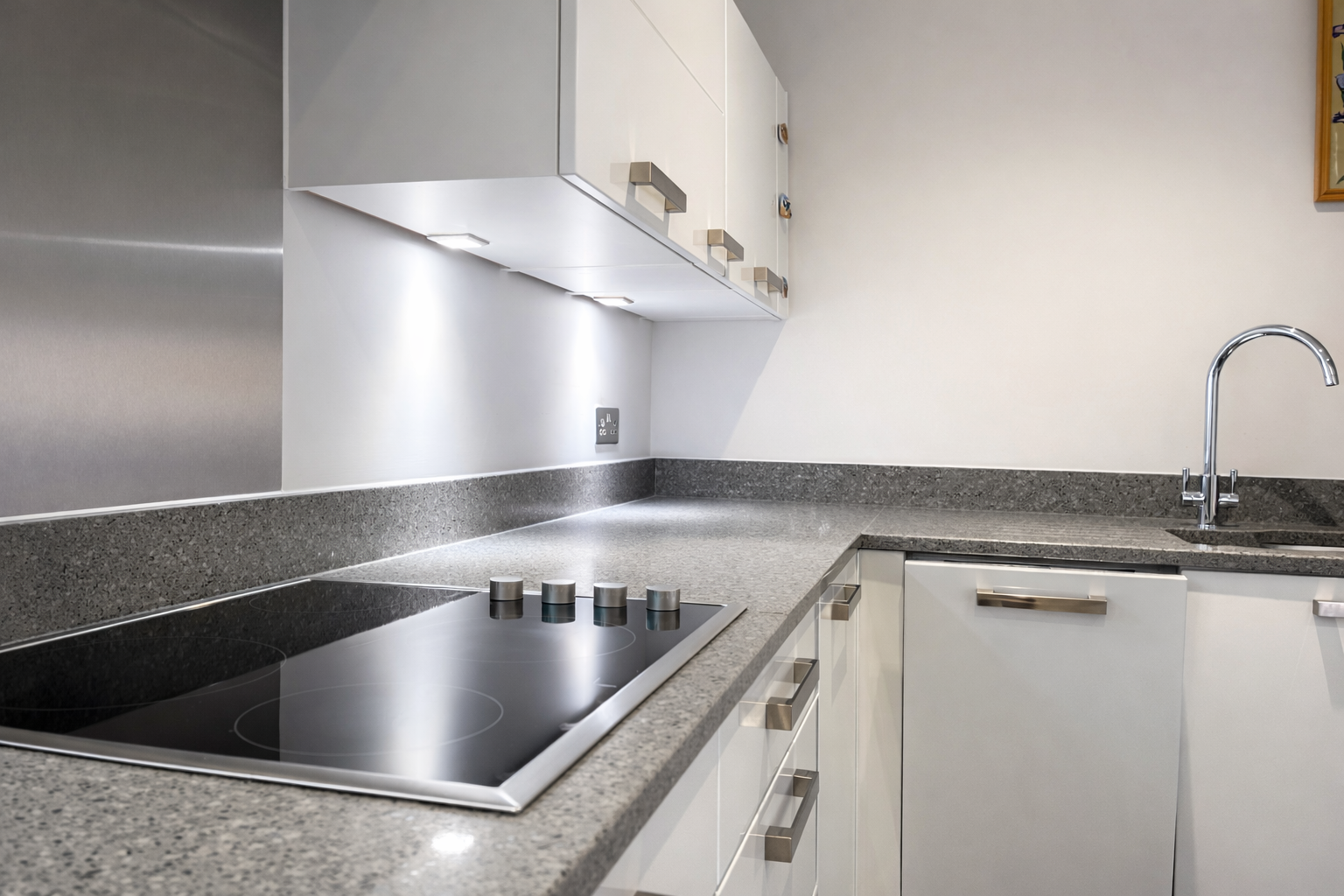 - Glass splashback to hob