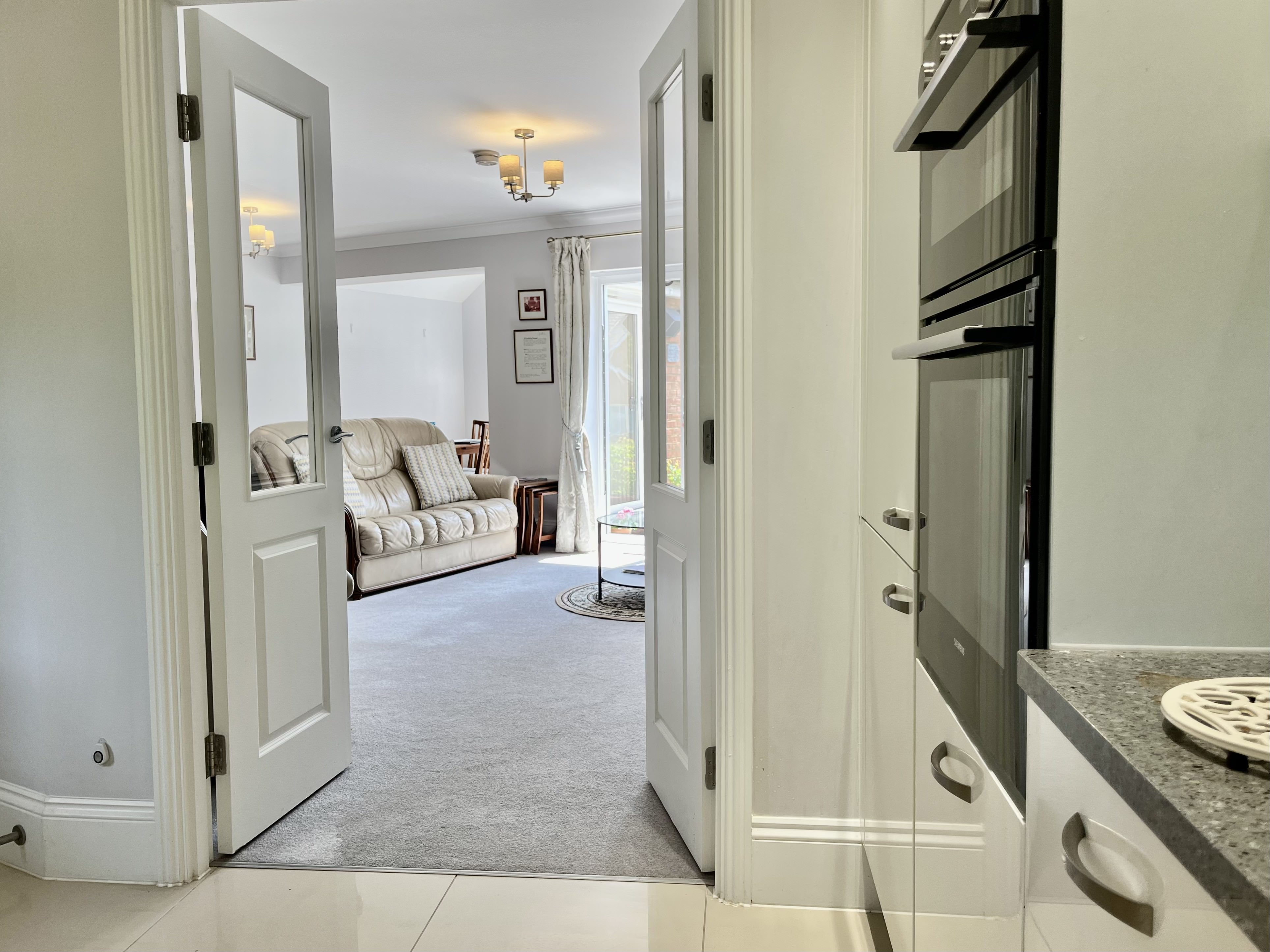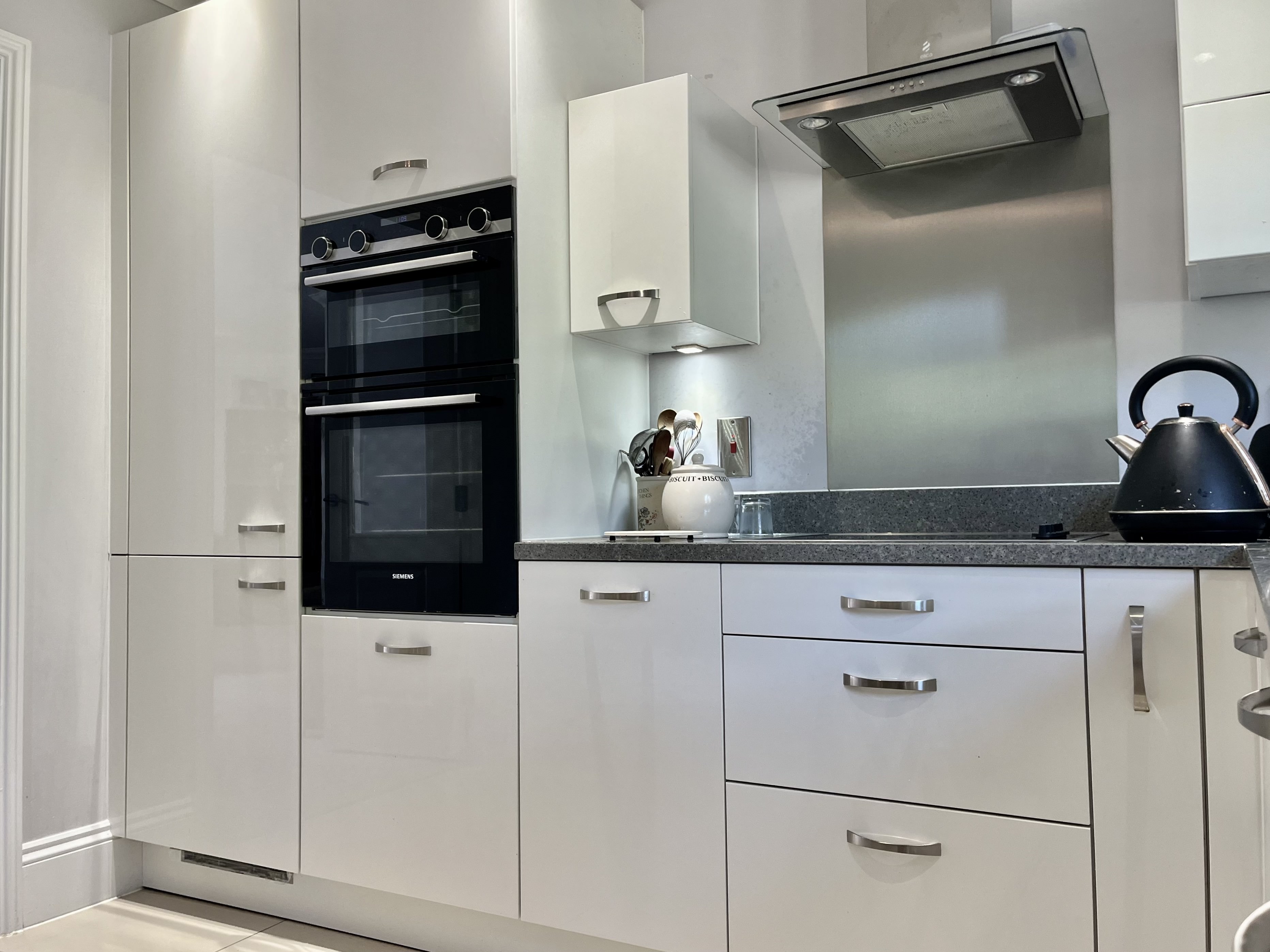 This apartment benefits from a private south-west-facing patio area, offering plenty of afternoon and evening sun. The kitchen is self-contained, with doors that can be closed off from the lounge to create separation when needed. Additionally, a Juliet balcony enhances the living space with fresh air and natural light.