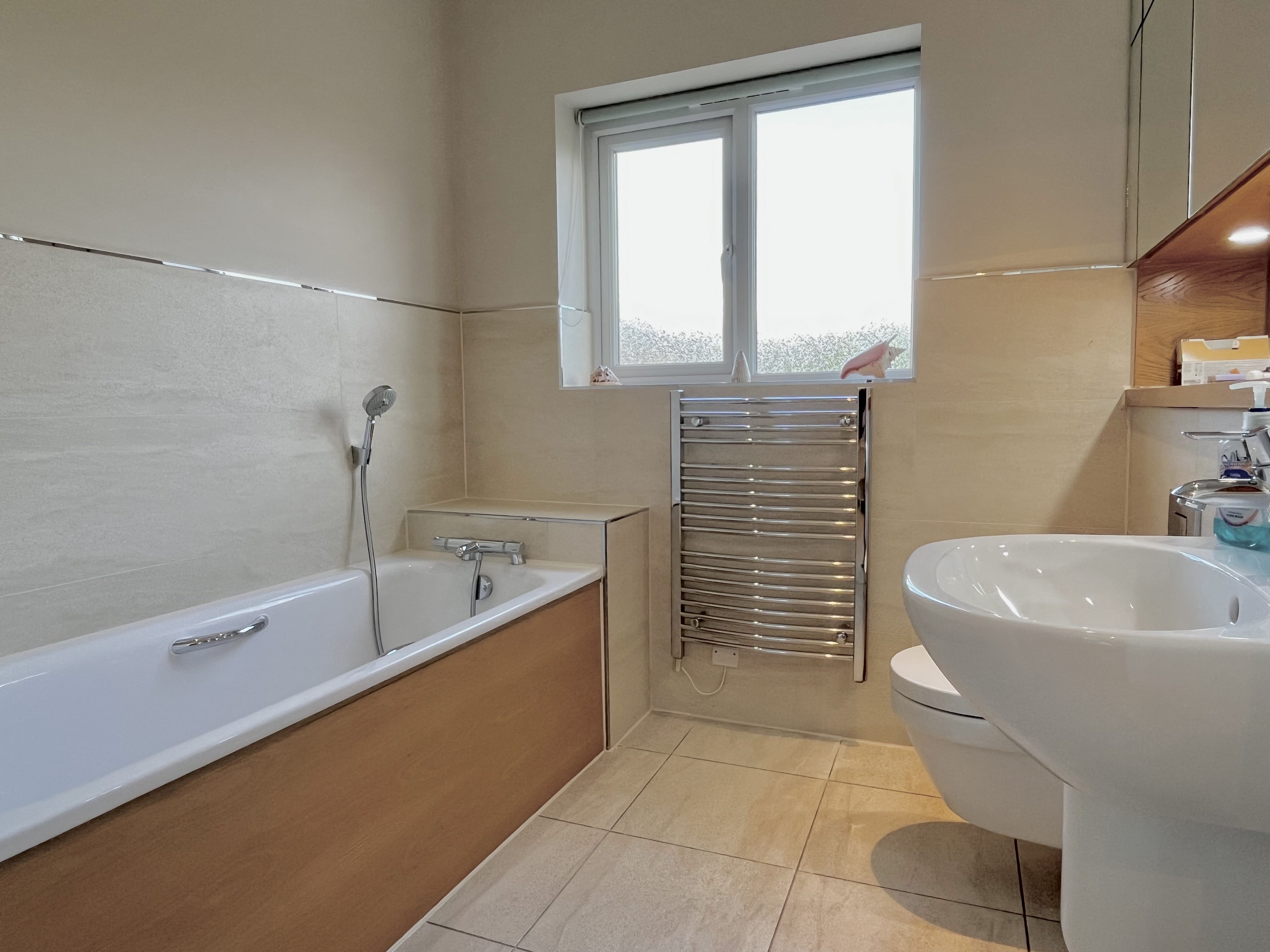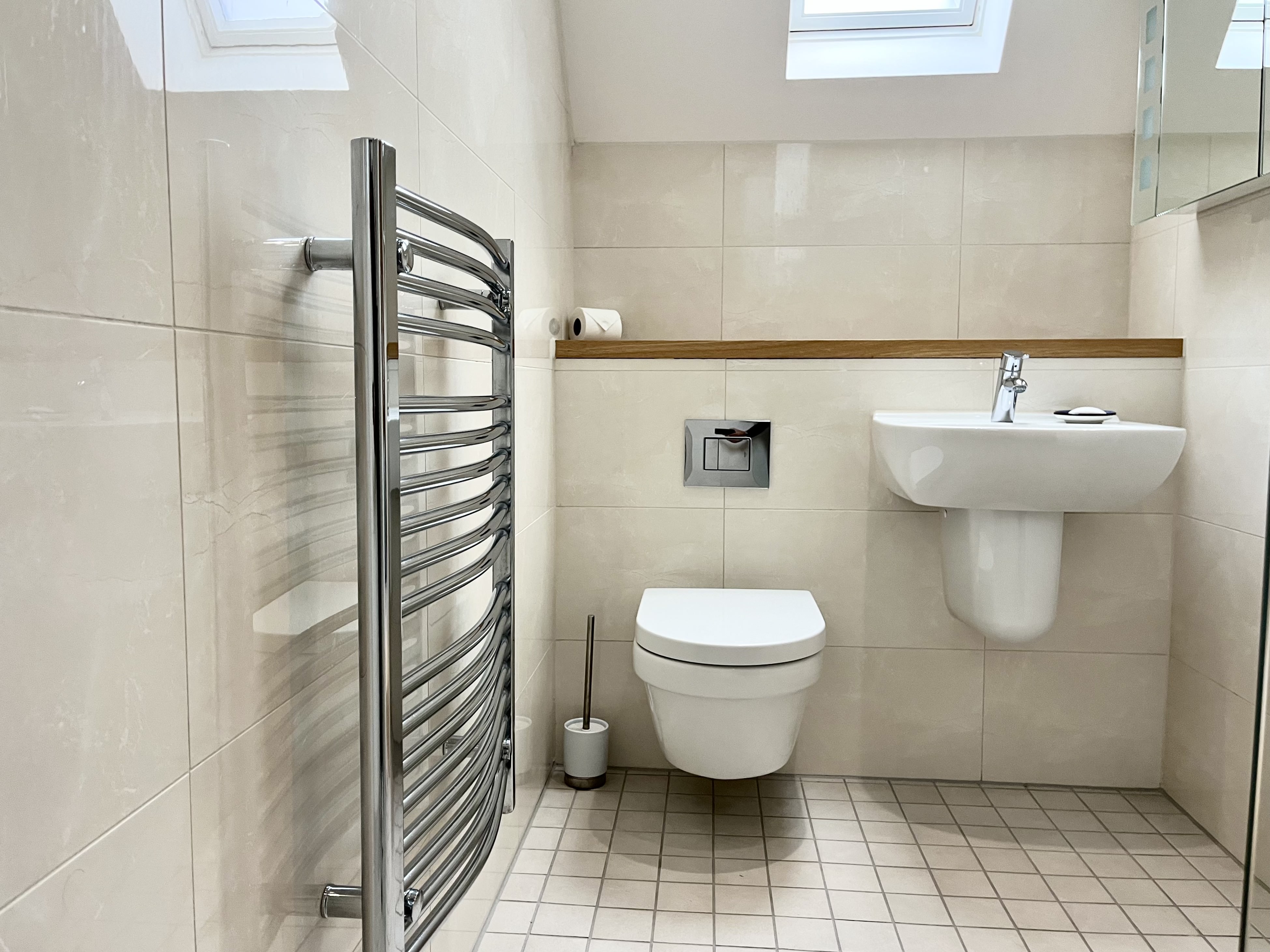 The cottage also offers a versatile ground-floor bedroom, perfectly suited as a guest suite, home office, or study, conveniently located next to a third bathroom.